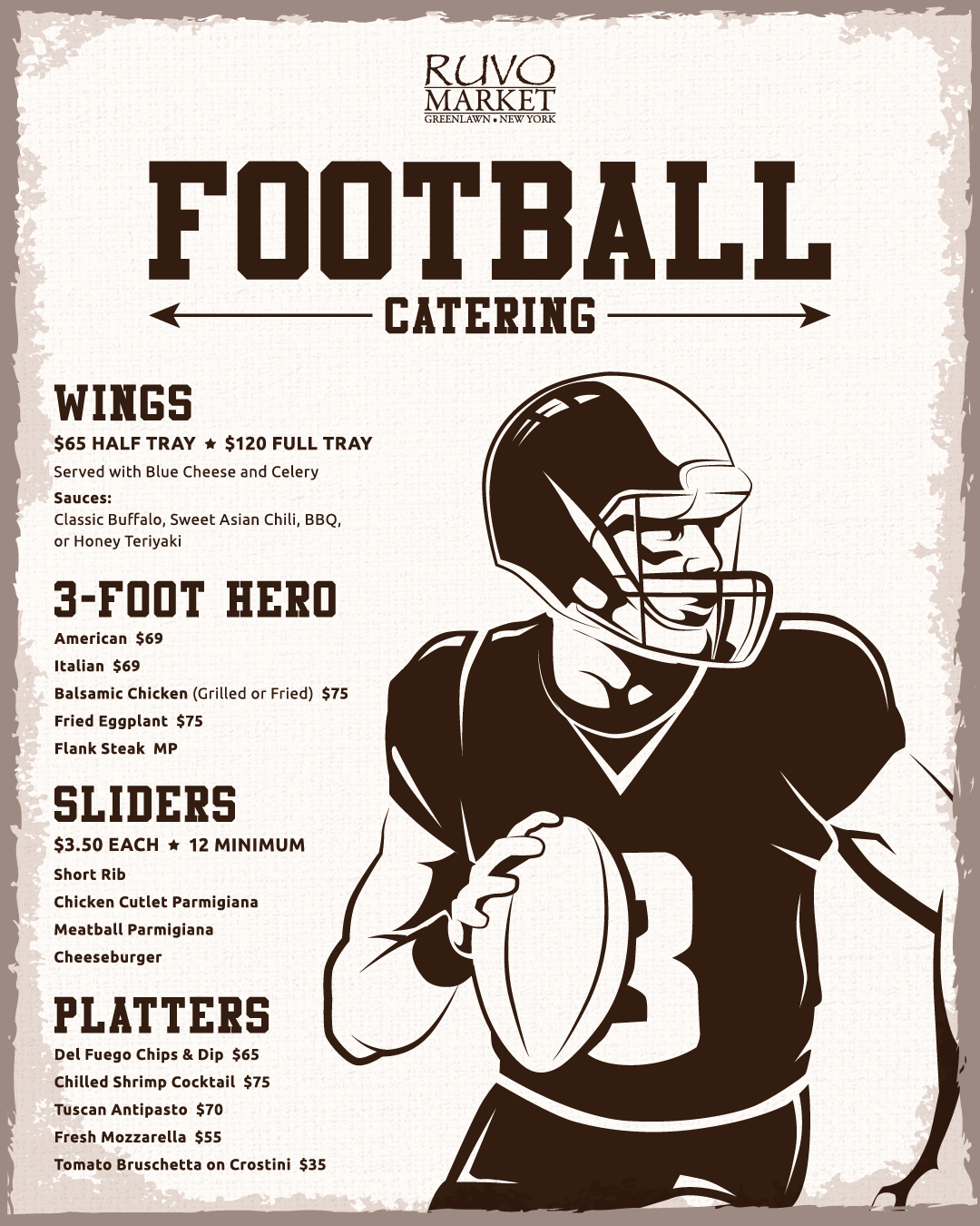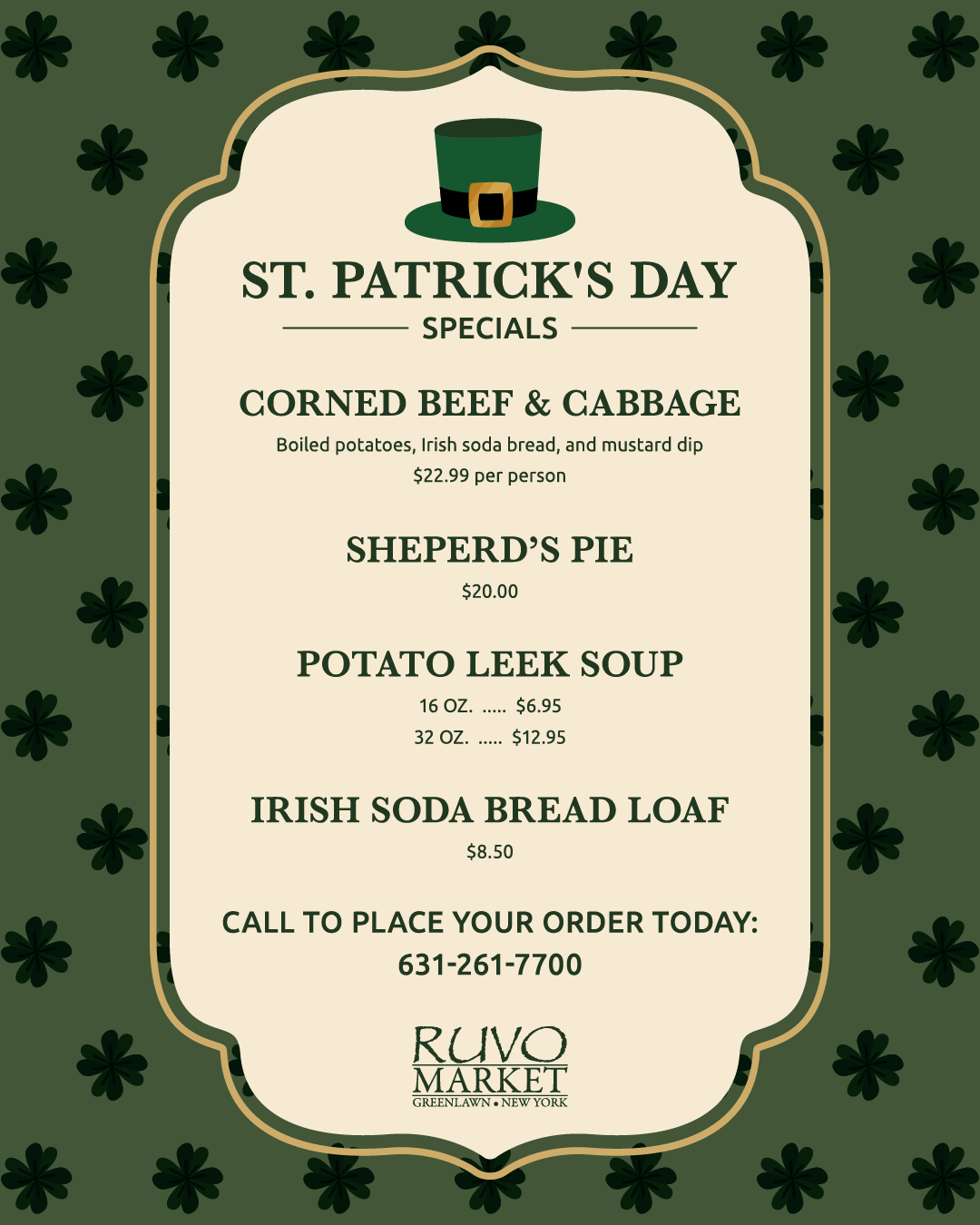 Please call the restaurant directly at 631.261.7700 to place your dinner package orders.